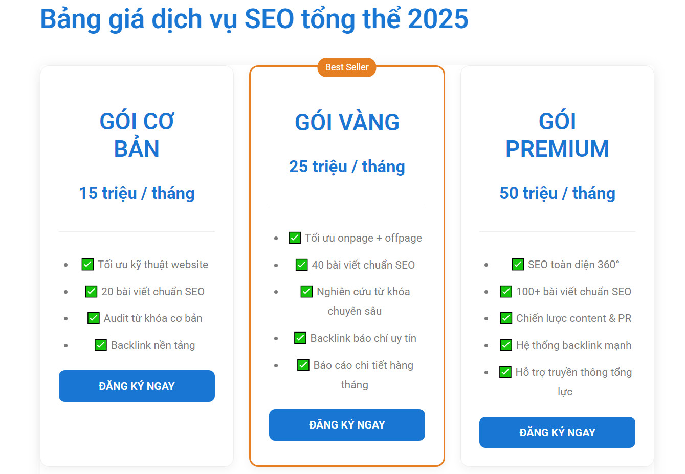 Gói Vàng: lựa chọn phổ biến cho doanh nghiệp đang scale, muốn tăng trưởng mạnh.