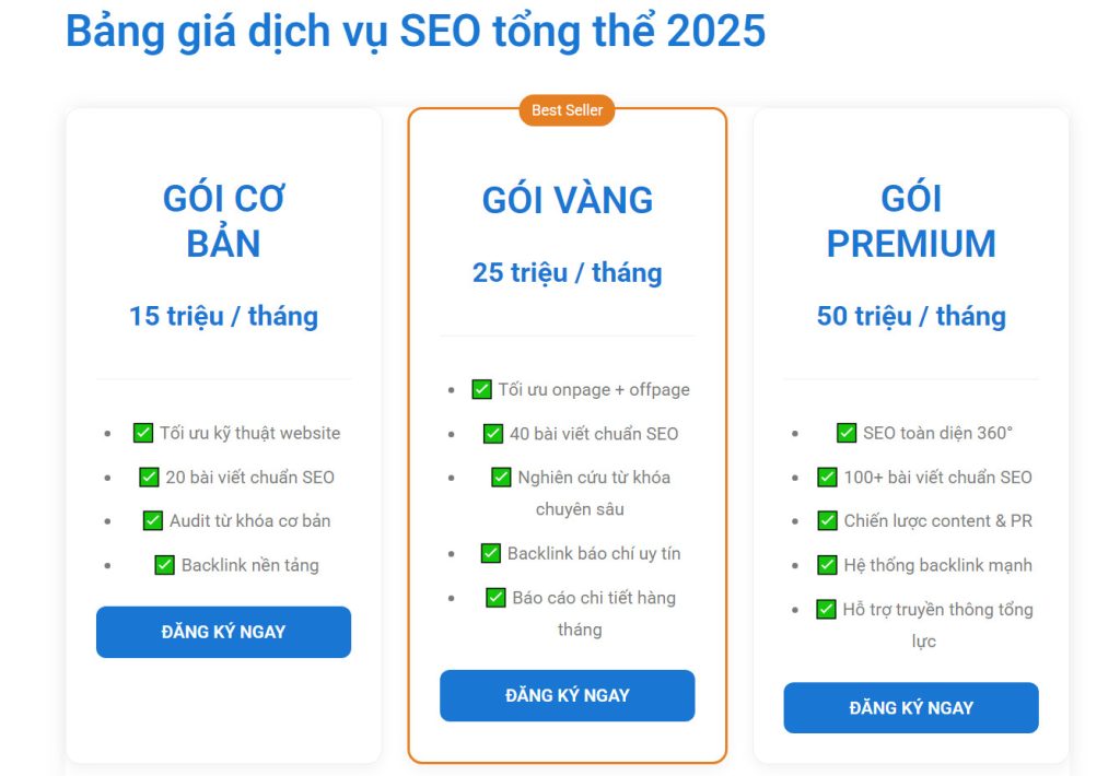 Báo giá SEO tổng thể 2025 – Từ 10–100 triệu/tháng, hiệu quả SEO thấy rõ sau 6 tháng